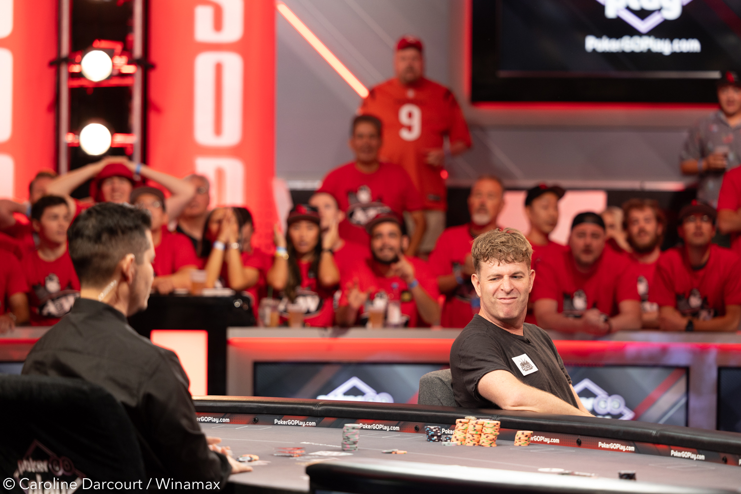 Estaba bien escoltado. Jason Mercier y Shaun Deeb hicieron acto de presencia en el rail del que a la postre se convertiría en el ganador del mayor Main Event de la historia. Con esos dos lugartenientes, difícil que se le escapara la victoria, pese a que los priemros compases del heads-up final había estrechado mínimamente las diferencias entre ambos. Steven Jones había conseguido pasar de 159 millones a 171 millones de fichas antes de que la mano final comenzara.