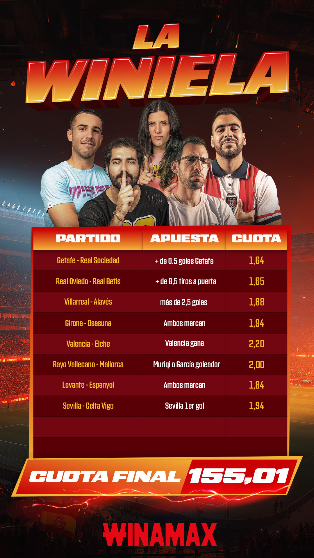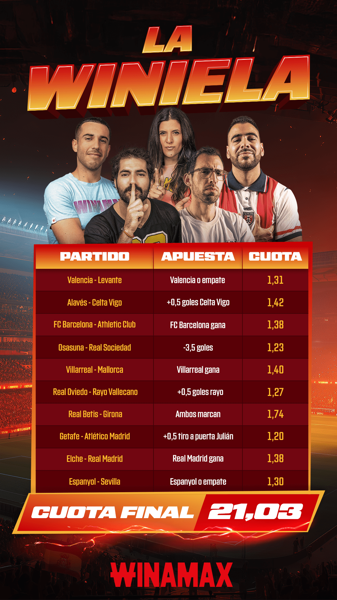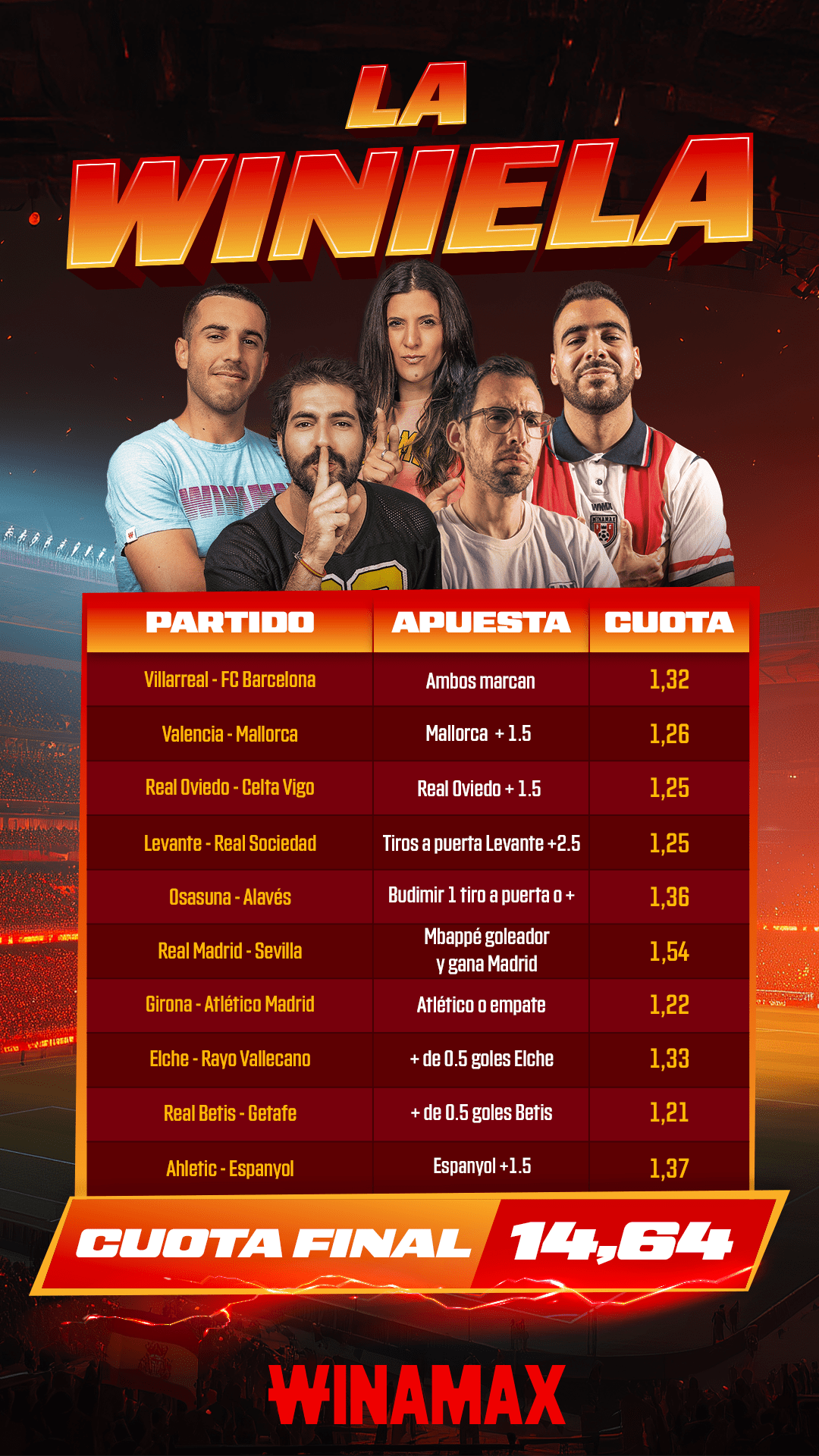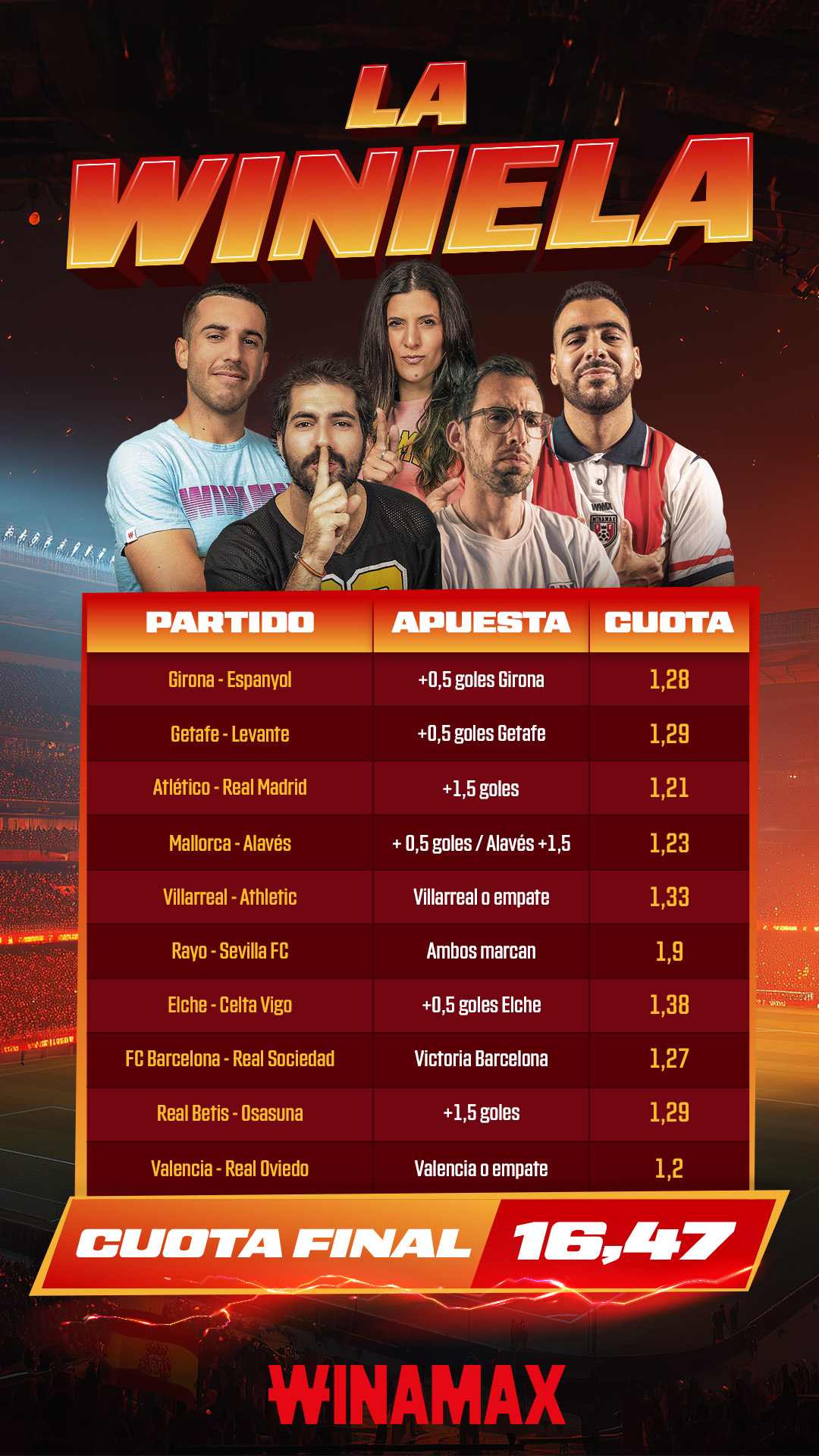 Condiciones de elegibilidad: solo se tendrán en cuenta las apuestas que contengan la mención "La Winiela".