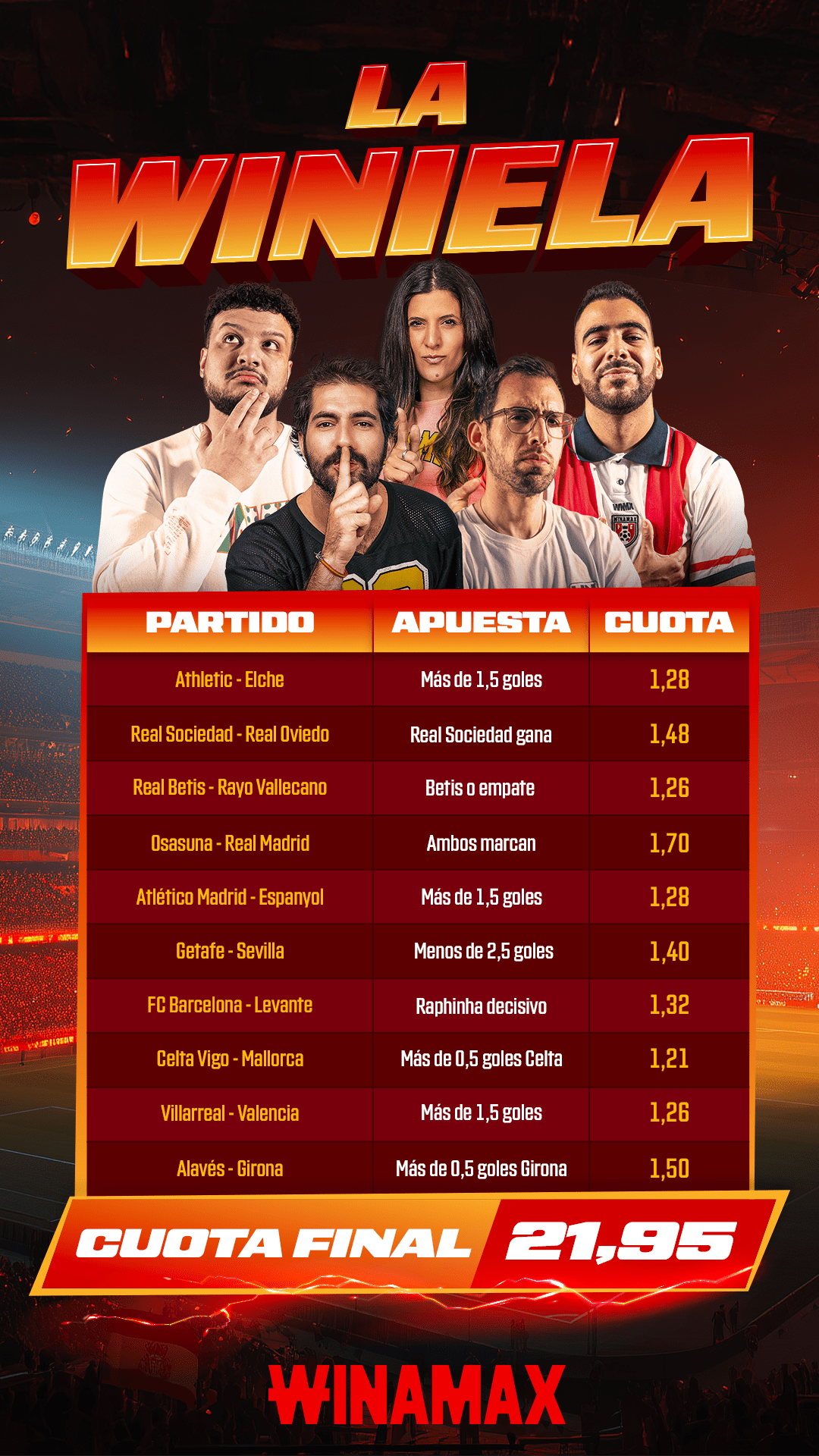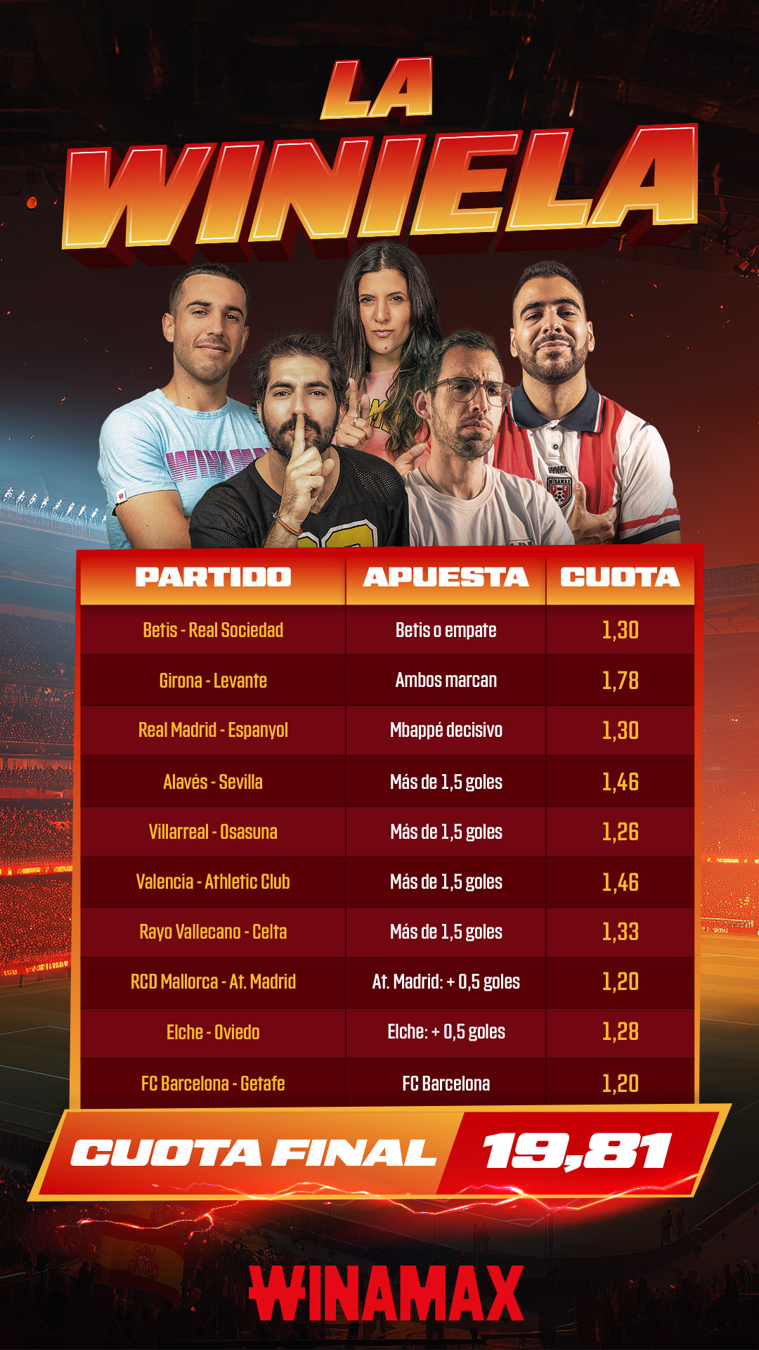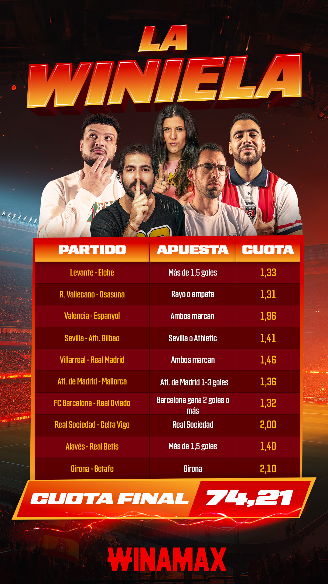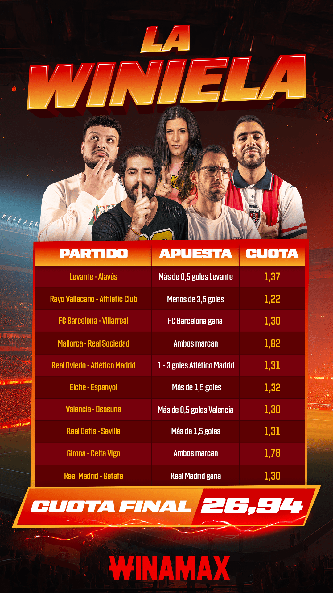 Condiciones de elegibilidad: solo se tendrán en cuenta las apuestas que contengan la mención "La Winiela".